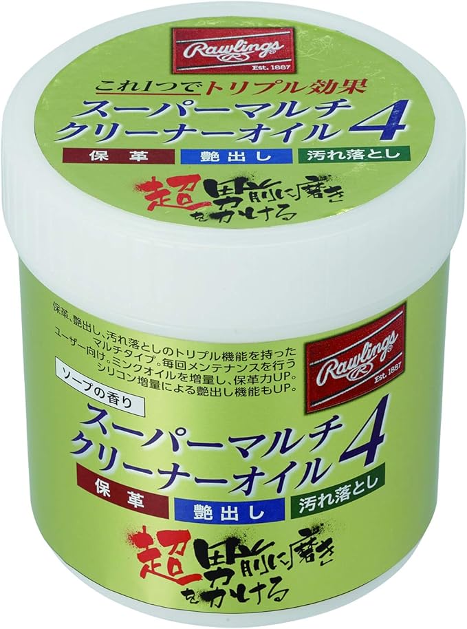 スーパーマルチクリーナーオイル4は、「汚れ落とし」「保革(油分補給・ツヤ出し)」ができるクリームタイプのグラブオイルです。