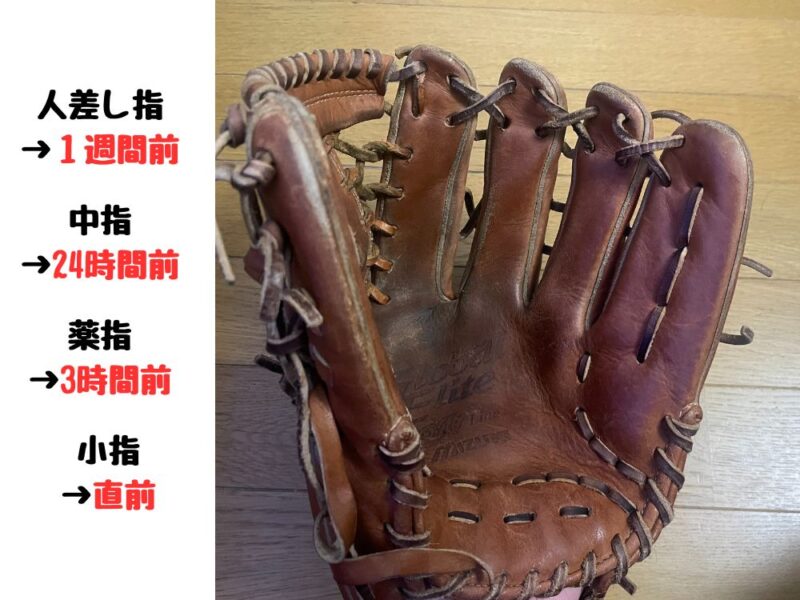 ですので、この時にしっかりとグローブをスッピン状態に戻してあげるよう意識しましょう。