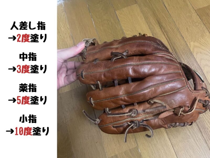 グローブ道の調査では、薄く3度塗り重ねるのがベストです。